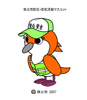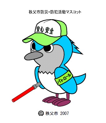 「秩父市防災・防犯活動マスコット」は、秩父市の鳥である「オオルリ」をモチーフにし、親しみ易いデザインとしてあります。