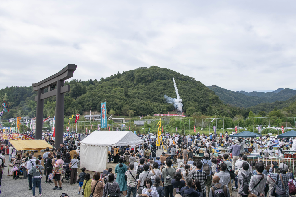 本年の龍勢祭には86,900人の来場者をお迎えしました。また、大野埼玉県知事をはじめ多くの来賓の方々にもご臨席を賜りました。来賓のご挨拶に続き、打上げの口上が披露され、導火線に点火されると龍勢は大空へと昇りました。観客の皆さまからは拍手喝采をいただき、来賓の皆さまからも大変好評をいただきました。